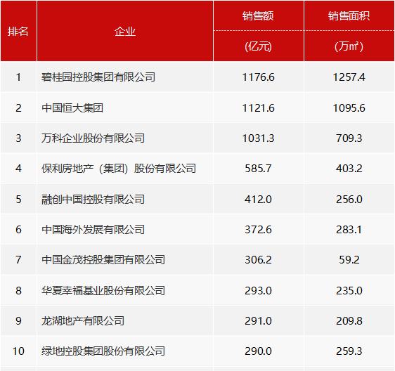 2018年1-2月中国房地产企业销售业绩排行榜
