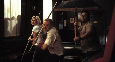 当僵尸们将幸存的几个人包围时,肖恩(西蒙.佩吉饰演)拿起几个台球杆给伙伴们,大家围在一起转着圈打僵尸,自动唱机里响着皇后乐队的《Don't Stop Me Now》。这个场景搞笑之余又把当时气氛的紧张和恐惧表现的很好,埃德加.耐特和西蒙.佩吉这两个活宝的功力可见一斑。