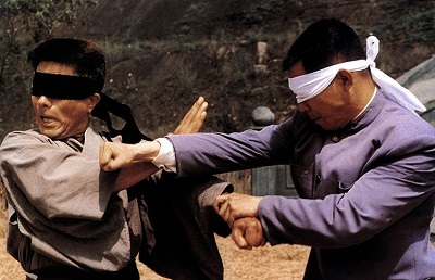 李连杰和仓田保昭向观众展示了什么才是拳拳到肉的搏击,武术指导Gareth Evans把这个场景列做他个人榜单中的前五,看看这个场景你就知道为什么了:当李连杰准备出手时发现他的敌人挣扎着看不太见时,他主动要求为了显示公平两人都蒙眼搏击。