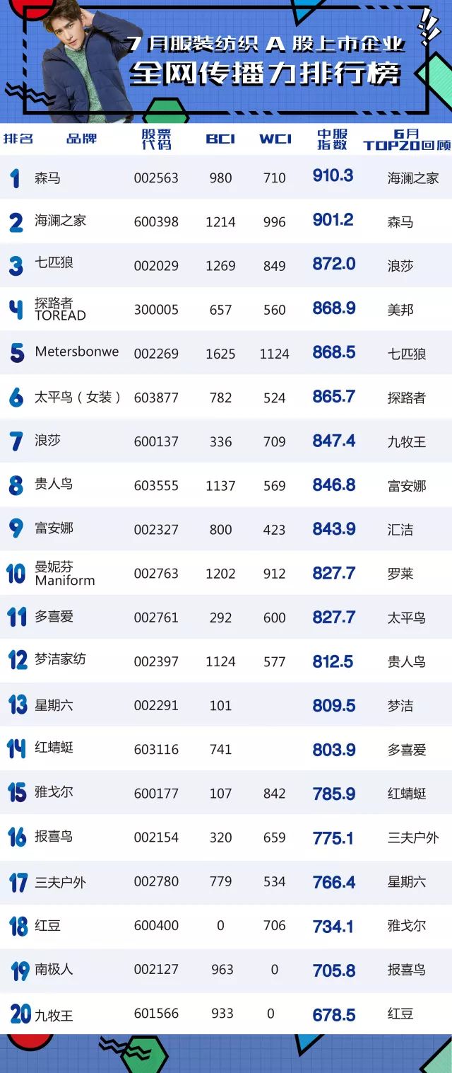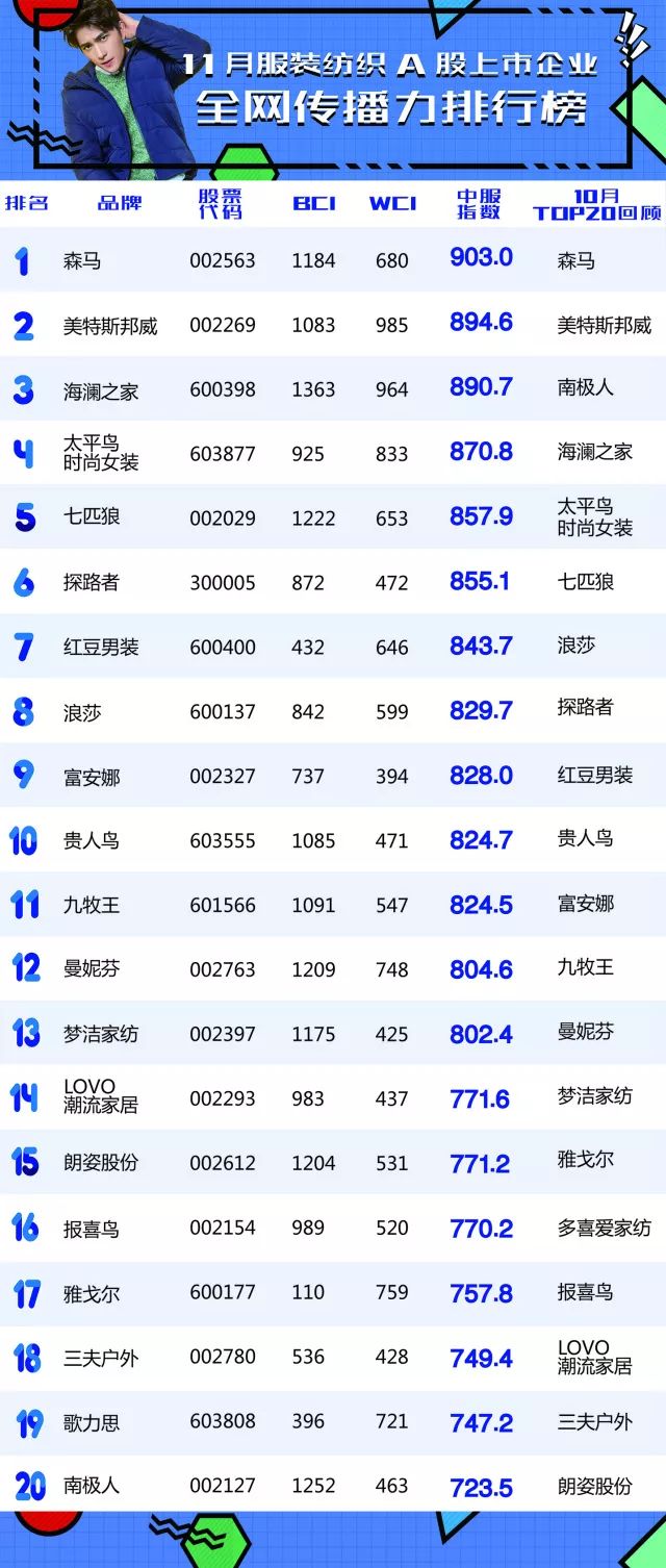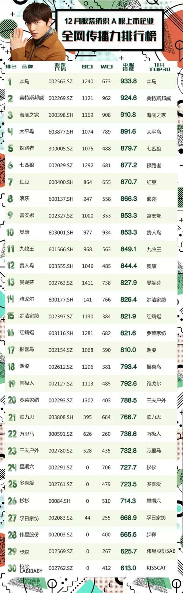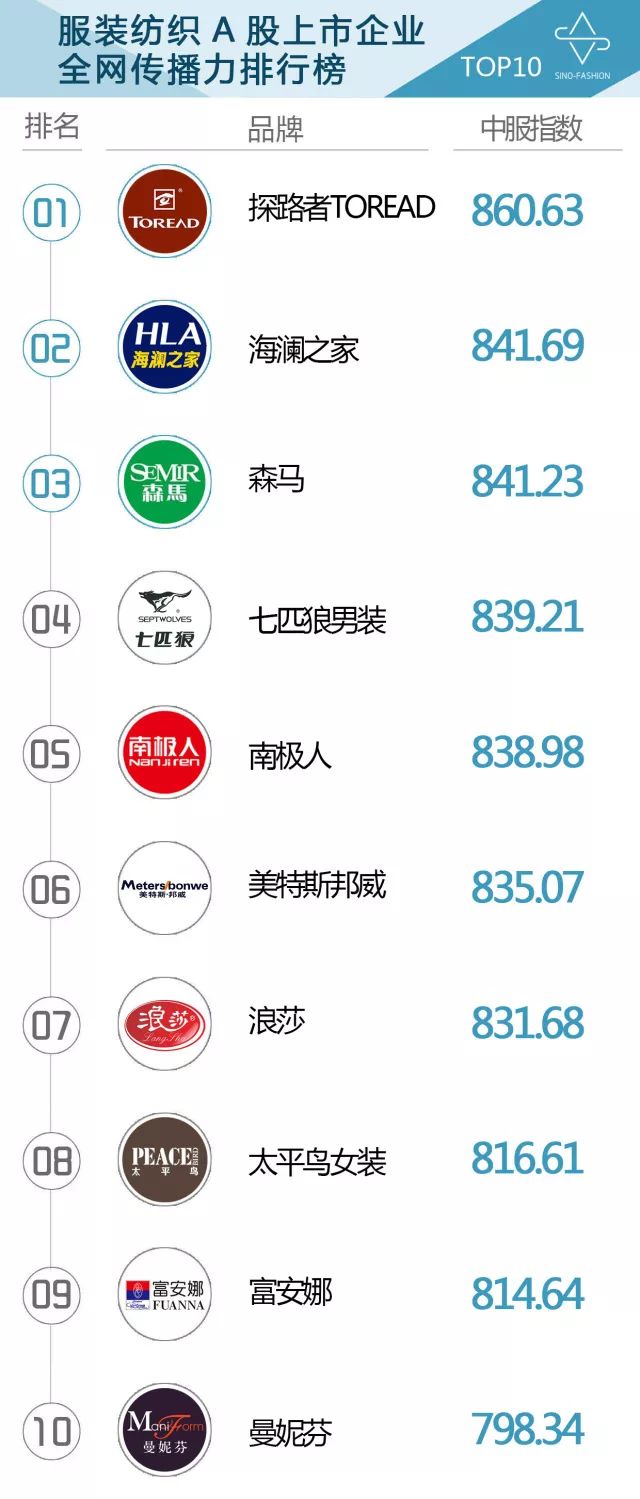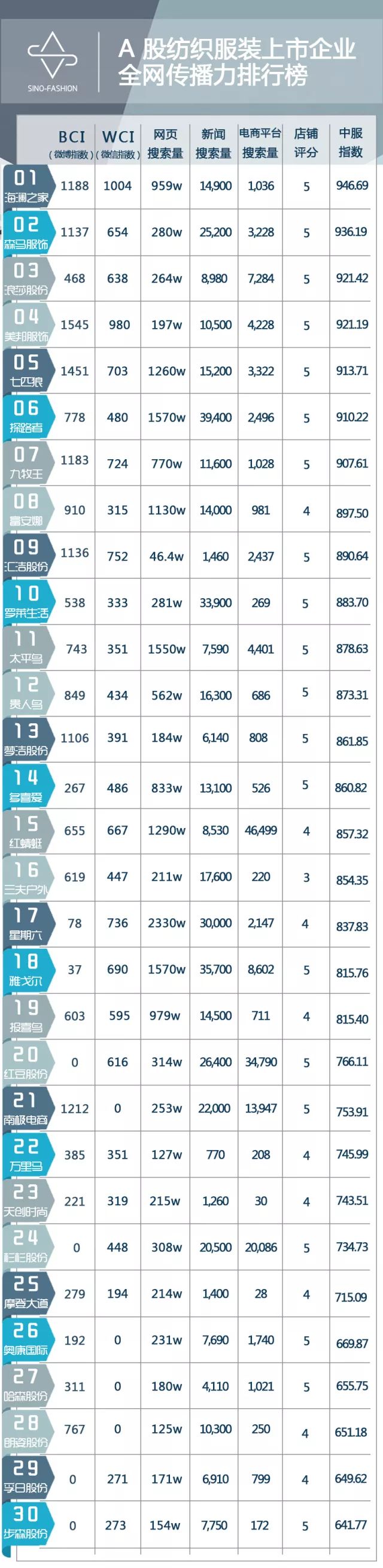之前中服时尚发布的中国服装品牌新媒体发展报告第一章、第二章获得了行业内的高度关注和热烈探讨,今天首发报告第三章——A股上市纺织服装企业全网影响力。如果说官方微信公众号传播影响力是考量一个品牌以微信为代表的社交平台推广能力,那么全网传播力指数则是指企业在更广义的新媒体上的总体表现。
