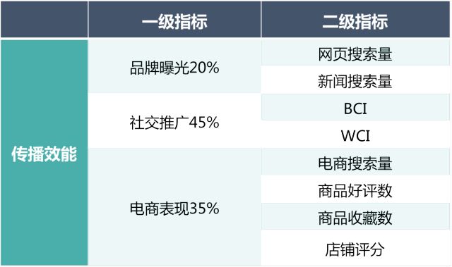 企业每月官方微博的转发数、评论数、原创微博数、原创转发数、原创评论数、点赞数;官方微信的文章数、发布次数、阅读数、点赞数、平均阅读数、平均点赞数、最大阅读数、最大点赞数、头条阅读数、头条点赞数;企业网页搜索返回数、新闻搜索返回数、电商平台搜索量以及店铺商品收藏量、店铺商品好评数、店铺评分,各项原始传播数据加总、取均值并标准化处理后,参照权重计算公式推导而得出每个企业的新媒体传播指数,再根据传播效益指数进行排行。