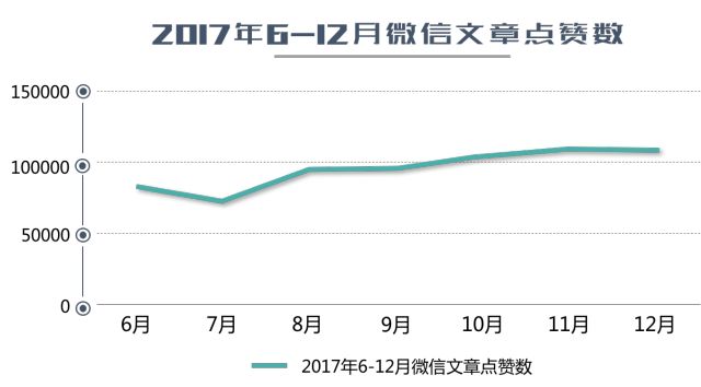 品牌微信传播的黄金期是9月,点赞数和阅读数较高。和微博同步,微信公众号8月发文懈怠,阅读量也较低。