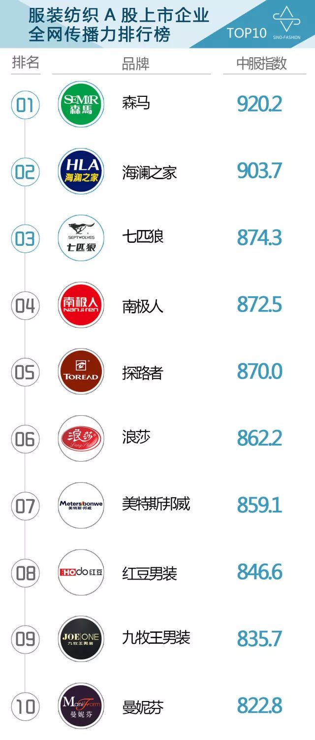中服时尚以94家A股上市纺织服装企业为初步研究对象,发布了纺织服装A股上市企业全网传播力排行榜。