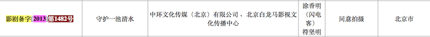界面新闻通过网络检索发现,早在2013年,中环文化传媒(北京)有限公司 和北京白龙马影视文化传播中心曾联合出品一部电视剧《守护一池清水》,并获得影视剧拍摄备案证书。编剧之一便是符坚明。其剧情梗概为:环保局长在处理污染事件中,面对种种困境,在自己的岗位上严格执法,在排入河流的废水中,经过化验发现有再利用价值,并为企业牵线搭挢,让废物变为宝物。