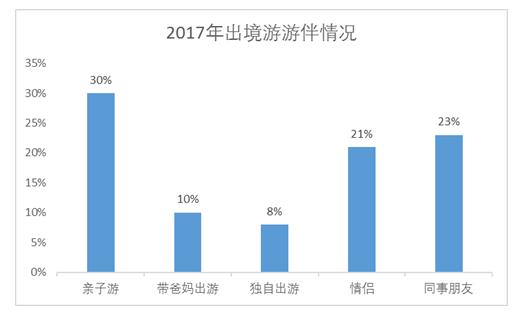 携程报告显示,2017年,亲子游占比高达30%,带爸妈出游高达10%。而对于可独立负担生活、受过高等教育的一些新中产来说,单身旅游也是消遣方式。2017年独自出游占比8%。