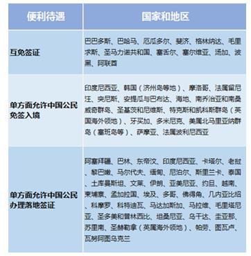 (2018年初,66国对华免签 数据来源:目的地国家政府机构)