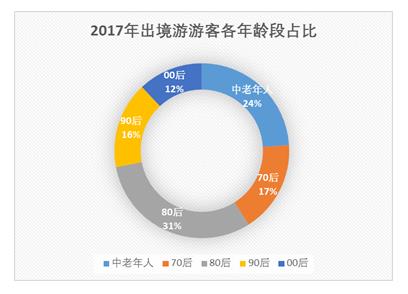 携程报告显示,2017年出境游人群中,80后占比31%,70后占比17%。中产群体是出境游消费中坚力量。