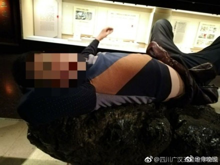 【四川】男子躺在三星堆博物馆展品上 馆方:工作人员劝阻无效