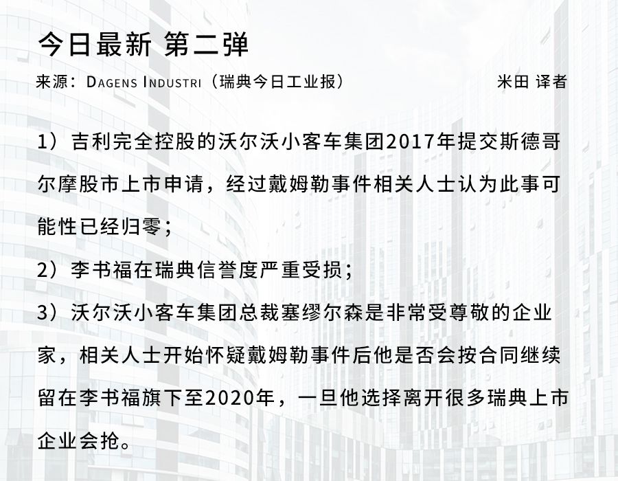 据《家族办公室》记者最新了解,戴姆勒李书福事件持续发酵,占据瑞典产经新闻头条: