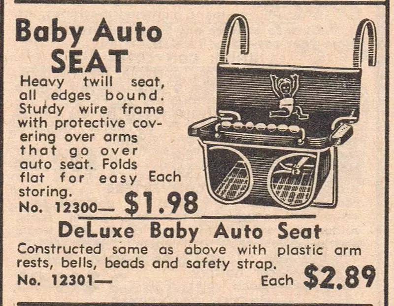 当然,这样的婴儿椅不仅售价便宜,使用也挺方便,直到今天,还有不少汽车用品有它的影子,比如车载纸巾盒、垃圾兜之类的。不过用来装婴儿的话,未免也太不安全了。