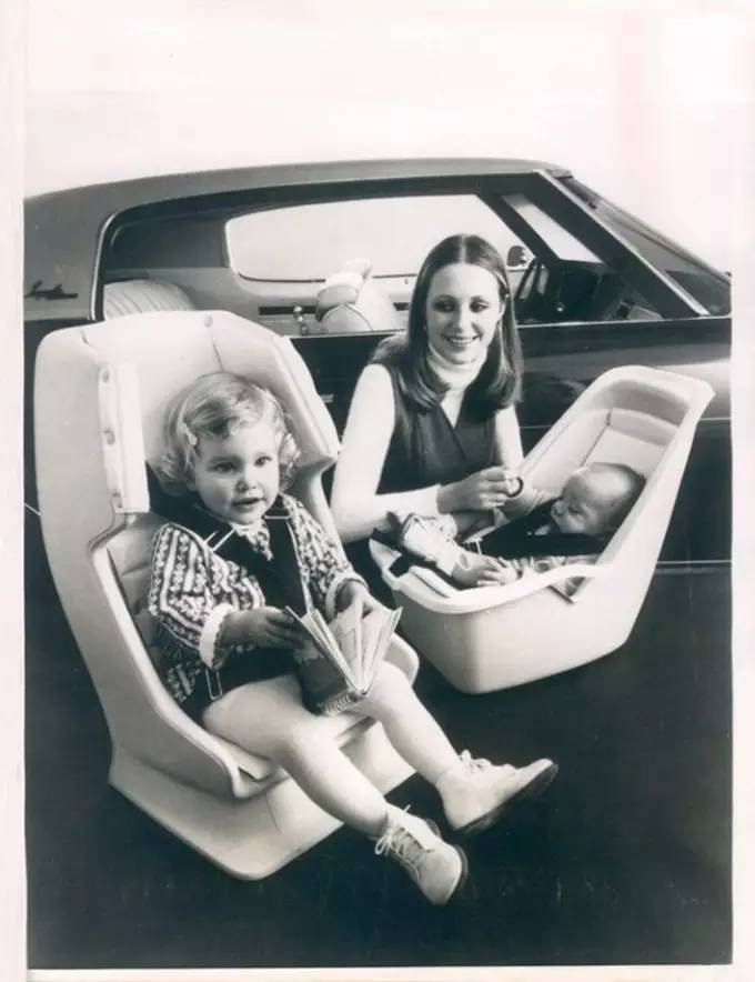 这样的状况一直持续到1959年,随着带有腰带和肩带的三点式安全带在汽车上开始普及使用,儿童座椅的安全性问题也迎来了突破的曙光。1962年,两位工程师几乎同时推出了自己设计的新概念儿童座椅。一款由英国人 Jean Ames设计,是一个面向后方的反向布局座椅,配备一条Y形安全带。第二个则是由美国人Len Rivkin设计,拢形座椅由金属框架构成,坐在其中的婴儿可以被紧紧固定。