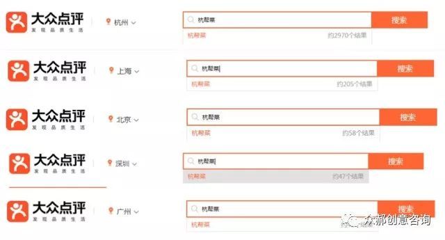 以“杭帮菜”为关键词在大众点评搜索,杭州有2967个结果,上海有205个结果,北京59个结果,广州45个结果,深圳47个结果。很明显,杭州餐饮市场过度饱和。