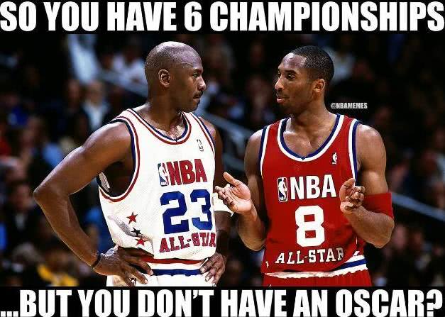 想当初,参演过《空中大灌篮》的乔丹可没这么幸运!科比这次拿奖也打破了此前奥斯卡史上12部获奖的体育电影没有足球和篮球的尴尬!也难怪科比会说拿奥斯卡比总决赛夺冠还爽!