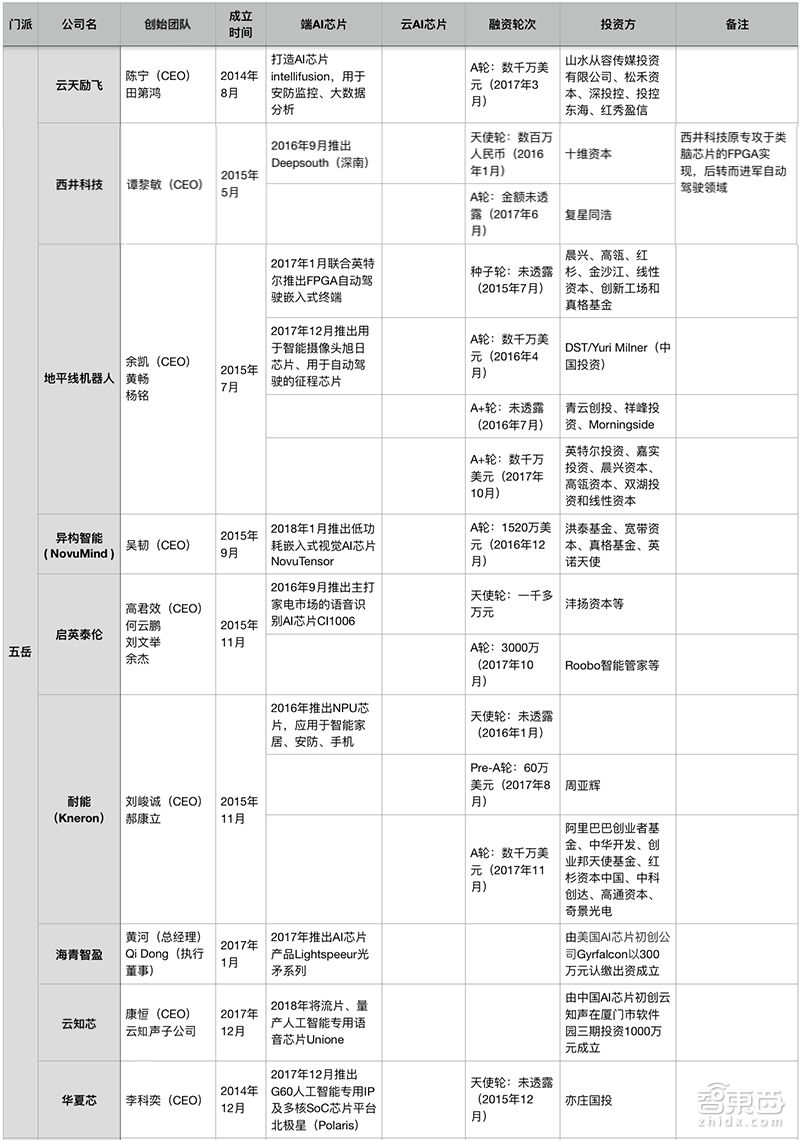 不过由于芯片前期的研发投入金额较大,“五岳派”的玩家背后普遍有科技巨头的投资身影,比如百度、腾讯、阿里、英特尔;又比如依图、云知声、云天励飞这类已经具备一定资本体量的人工智能创业公司。