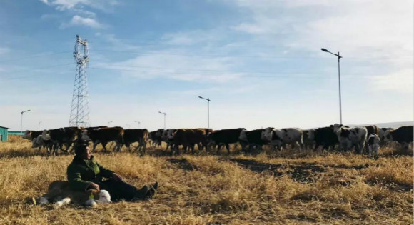 零下十四度的海原,正在拍摄群牛奔腾。