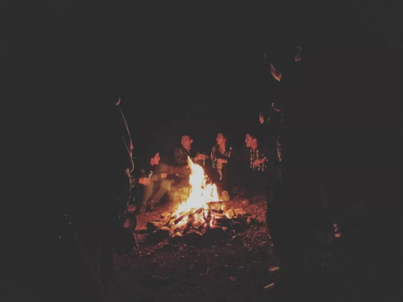 百色希望小镇附近的山顶,夜晚气温很低,正在拍摄篝火戏。