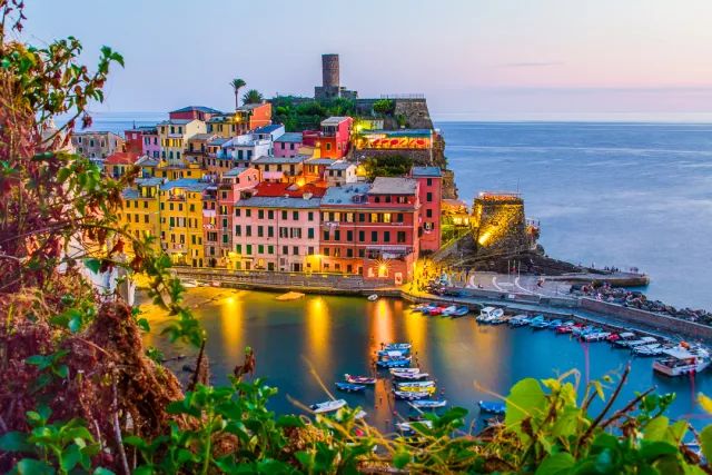 从Corniglia下来,是Vernazza,五渔村里唯一拥有天然海港的小镇。在中世纪时,涨潮时,海水甚至会直接涌进建筑物。当地人过去以打渔为生,当冬天或海面有大风浪的时候,会把渔船拖上岸,放置在广场上当做餐桌。