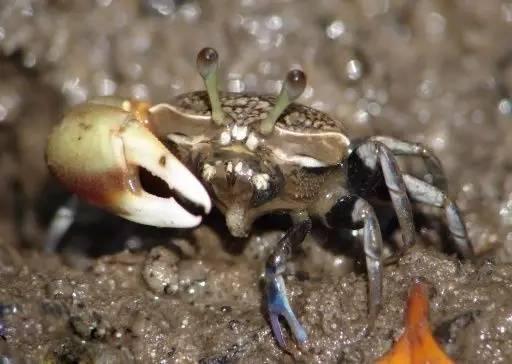 是国内常见的招潮蟹品种,是网纹招潮蟹的一种,生活在我国南方拥有丰富土壤的沿海岸或红树林地带,另外泥泞的沼泽,会筑火山形或称烟囱状的洞口也是它们的最爱。
