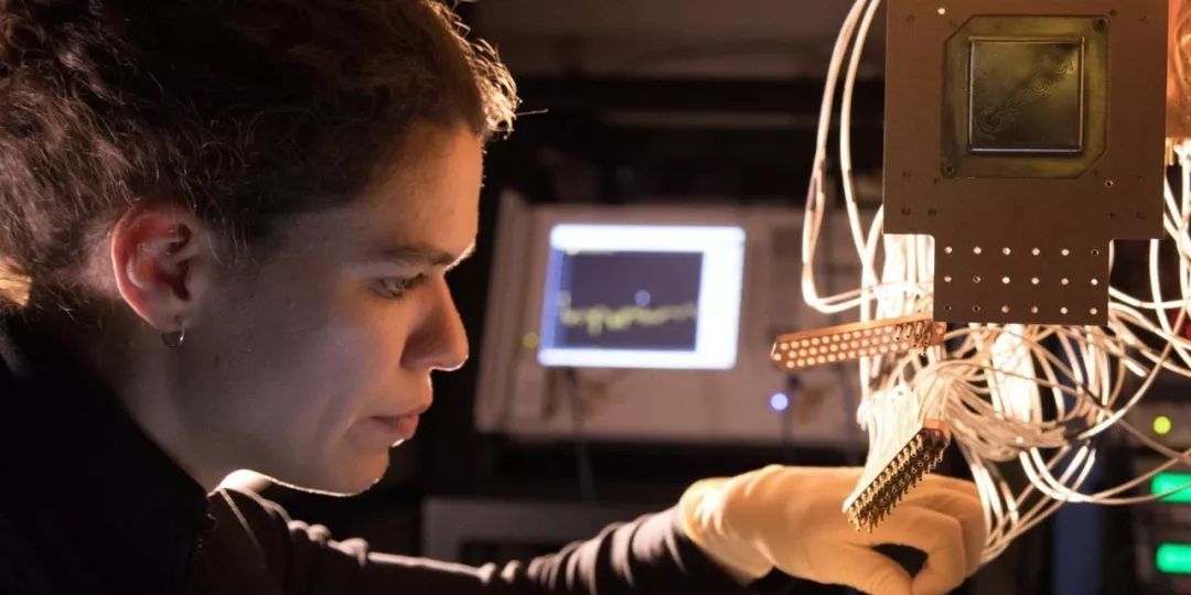 研究科学家Marissa Giustina在圣芭芭拉谷歌量子AI实验室安装Bristlecone芯片。来源:Google Quantum AI Lab