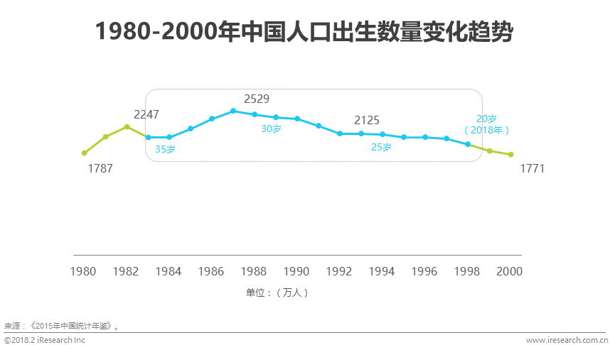 艾瑞整理《2016年中国人口与就业统计年鉴》数据显示,2015年中国15岁以上的单身人口数量约为3.08亿人,其中男性约为1.63亿人,女性约为1.46亿人,性别缺口超过1728.8万人,且未来此缺口仍将存在。此外,根据《2016年中国统计年鉴》统计数据显示,1980年至2000年是中国生育高峰期,且在1987年达到顶峰。现阶段1982年以后出生的人群(即35岁及以下)正在进入婚恋需求期,且根据1982年至1997年出生人口变化趋势,未来5-10年婚恋需求仍是婚恋需求高峰期。