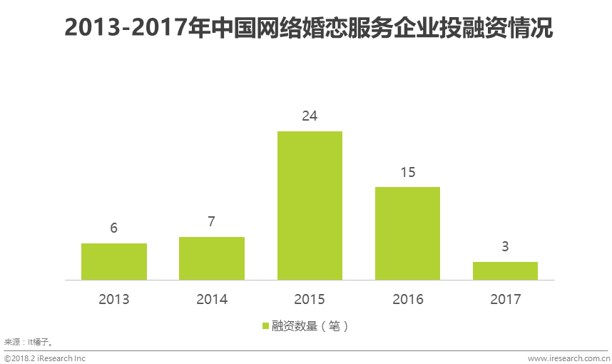 婚恋行业由于拥有庞大适婚人群刚性服务需求基础和较好的变现潜质,在移动端快速崛起带来新机遇和核心企业频繁资本运作而提高市场关注度的背景下,于2015年重新回到部分资本视野,投融资笔数暴增242.9%。资本的回归,带来的是网络婚恋移动端新进入者的剧增,随着移动端代替PC端成为行业流量来源主体,行业竞争进一步加剧。
