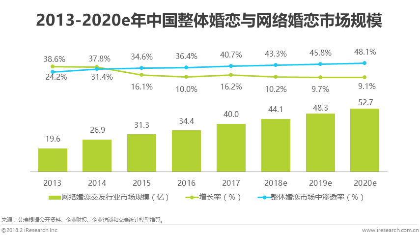 2017年中国网络婚恋市场规模达40.0亿