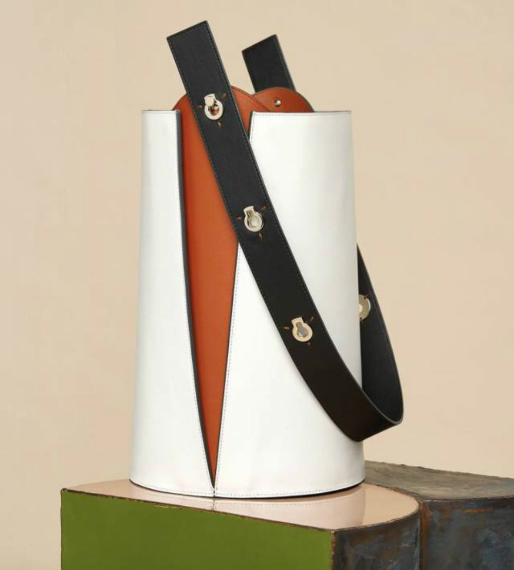 Danse Lente包款设计灵感来自现代美学,款式简约,线条明快,配色优雅,充满建筑的雕塑感。当中不乏年轻化的设计细节,比如标志性的硕大螺旋感大圆环。最常见的Danse Lente包包有三款,一个是翻盖Phoebe,这并不是一款传统的通勤包,虽然有着大容量的风琴包结构,但拧巴着的螺旋感大圆环和文艺拼色看起来更像时尚博主带出街的当季it bag;另一款是宽肩水桶包,两侧有大胆的开裂设计,硕大的体积看起来气场很足,但对于矮个子来说就是生命难以承受之轻;最具造型感的是五边形Johnny Bag,手拿款式可作皮革版本的法式“菜篮子”,大刀阔斧的轮廓感加上撞色拼色元素,满足极简风和艺术感,堪称Instagram摆拍最佳道具。除了经典款,Danse Lente2018早秋系列也推出了更简洁的“水桶包”和“菜篮子”造型,还有一款全新托特包加入。