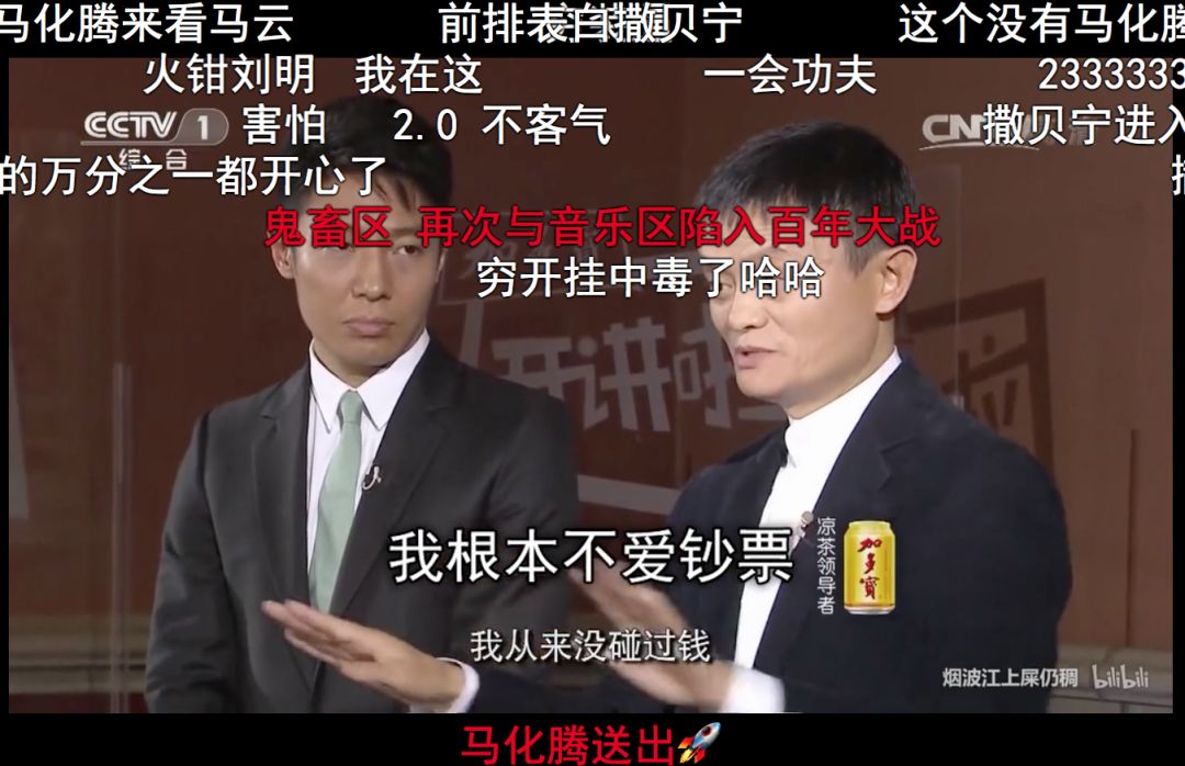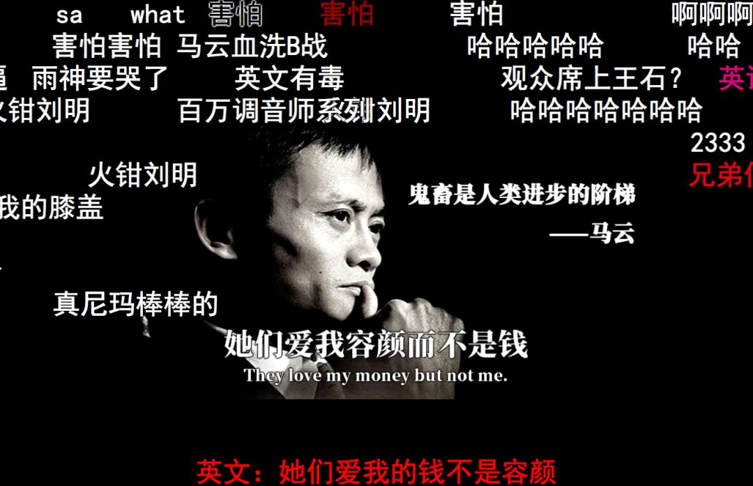在央视《开讲啦》栏目中,马云宣称自己“对钱不感兴趣”,并遭到一旁撒贝宁的侧目,这段视频很快就成为了UP主们制作鬼畜视频的素材。2017年11月3日,也就是那一年双11的前夕,UP主@深海色带鱼 为马云,制作了一首翻唱自萧敬腾代表作《王妃》,名为《【马云】王妃:我的baby,我要霸占你的钱!》的全新单曲。