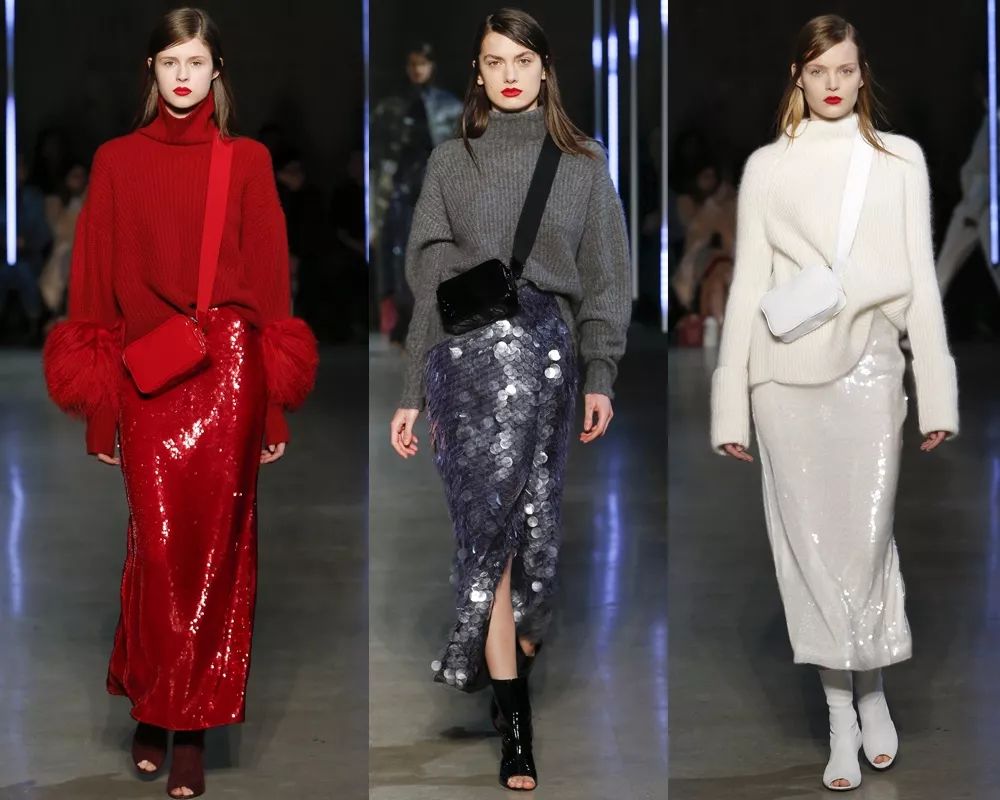 而奢华的Sally LaPointe,同样的裙+毛衣,用各种闪亮、鲜明元素+大量感的设计,打造出了不失女人味儿的强势!