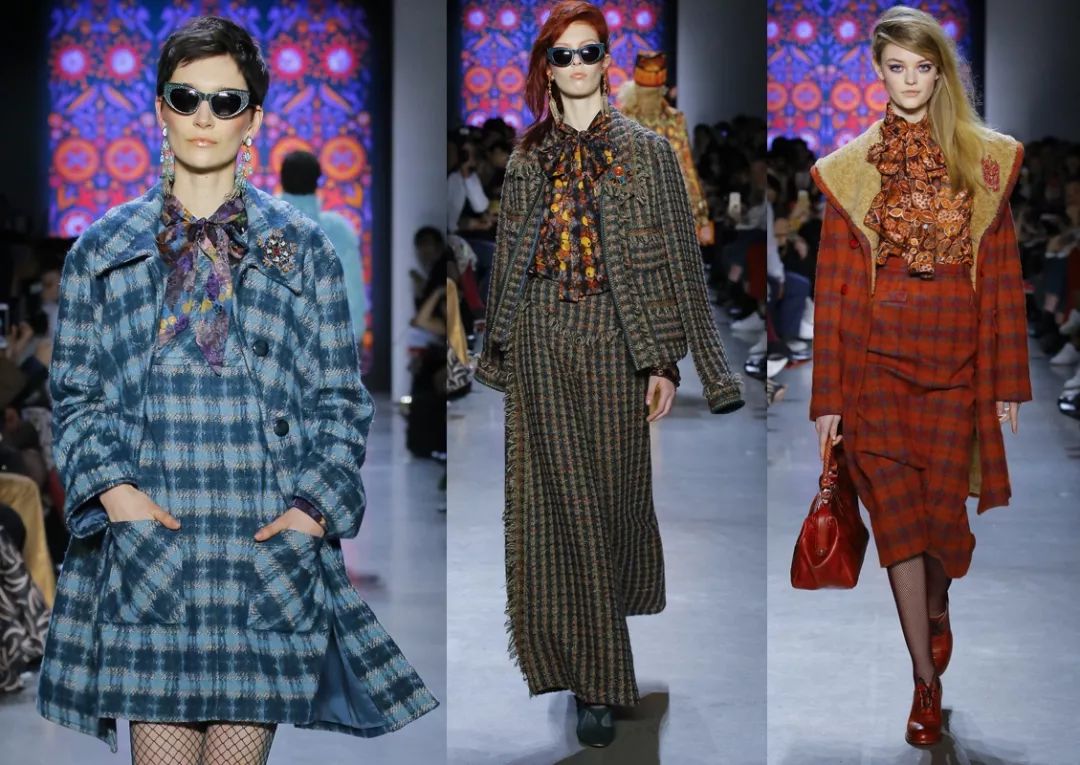 虽然Anna sui的各种花哨一直以来对我而言都有些过头了,但是今年秀场上几身格纹套装搭配同色系印花倒是给我找到了最近大火的格纹套装、花呢套装的文艺新搭法。