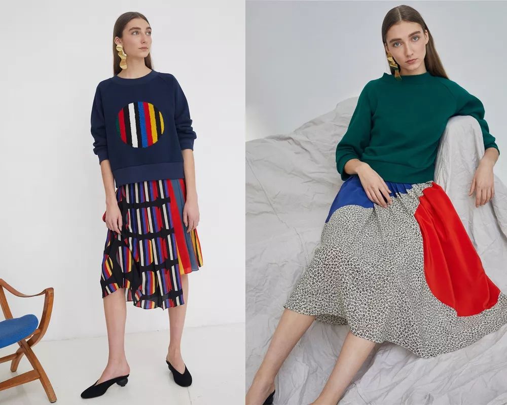 比如,擅长在简单的单品上加以色彩、印花的设计就出彩的纽约品牌Whit,就用色彩条纹让最简单的look明亮夺目起来~