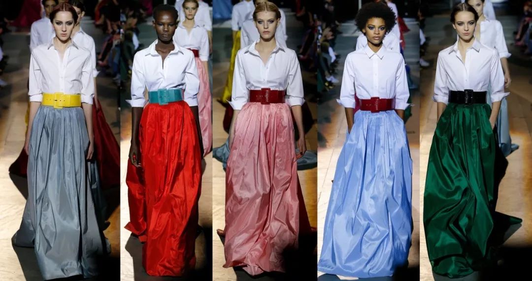 而附赠看腰带,或许是为了纪念Sharon Stone那一袭白衬衫的惊艳亮相,Carolina Herrera用一件白衬衫搭配了各种色彩的大长裙,更好像是为了说明白衬衫的重要性!