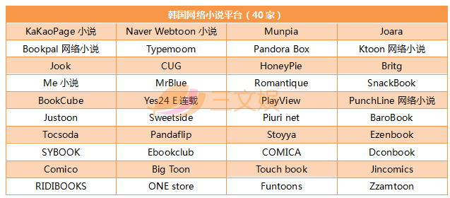 根据韩国文化产业振兴院发布的报告显示,截至2017年10月份,调查中所掌握的韩国国内网络小说平台共有四十家,其中排在前五名的企业,销售总额几乎占到了国内网络小说市场的90%。