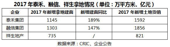 泰禾、新力、融信、祥生等房企的销售目标普遍较高,涨幅均在70%以上。在拿地方面,这些房企在2017年都拿了大量的土地,为销售规模的快速增长做好准备。