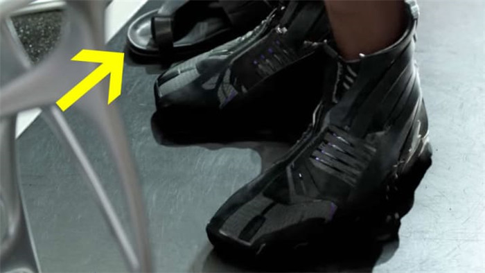 3. 苏睿公主(Shuri)为特查拉(T'Challa)研发的自动系带战靴参考了《回到未来2》(Back to the Future Part II)中的自动系带鞋子。苏睿公主甚至称《回到未来2》是特查卡国王(T'Chaka)以前喜欢看的“美国老电影”。