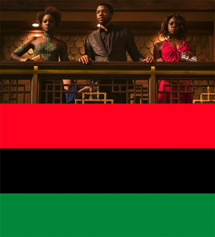 16. 奥克耶(Okoye)、特查拉、娜吉雅(Nakia)出现在赌场时,他们分别穿着红色、黑色和绿色的衣服。这正好是泛非洲主义(Pan-African)旗帜的颜色。真是个巧妙的设定。