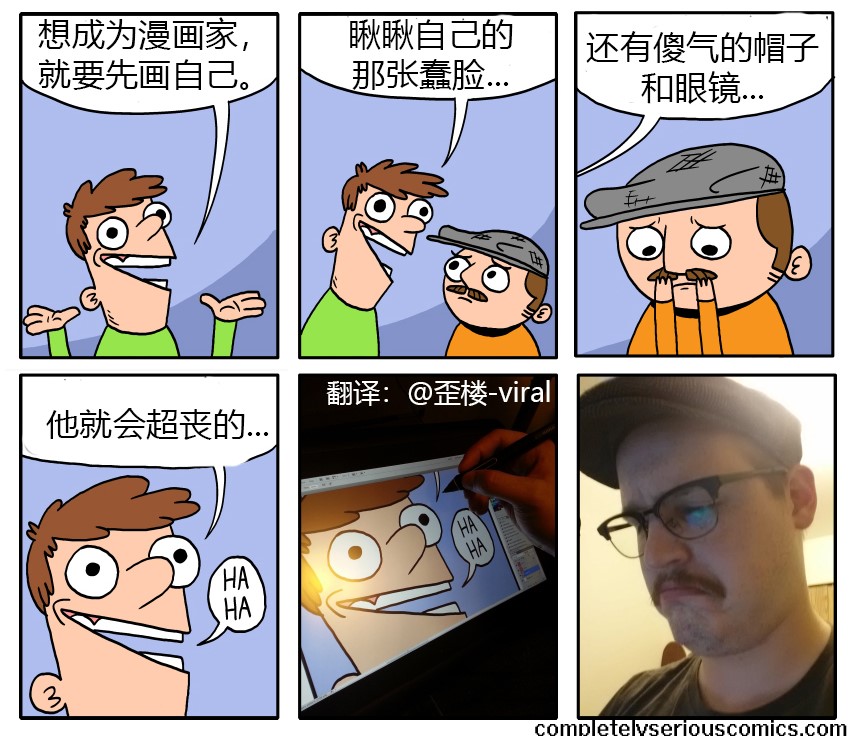 看看小漫画completely serious comics的作者Jesse Nylund,你就知道了,漫画画得丧,全靠人混得惨呐。