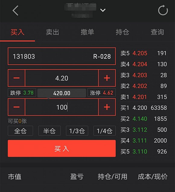 做好这些准备工作就可以操作了,比如你要购买深市28天的国债逆回购R—007,代码131803:
