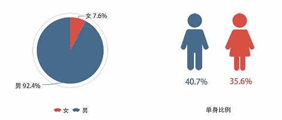 其中男程序员单身比例达到了40.7%,女程序员单身比例也达到了35.6%。