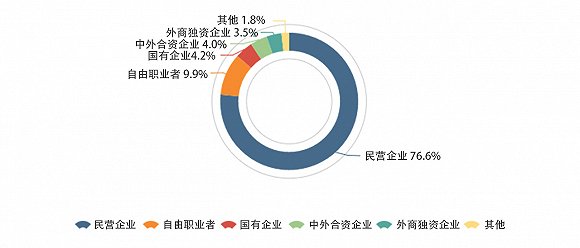 图表显示,近四分之三的程序员所在民营企业,近一成的程序员是自由职业者,国有企业的程序员仅占4.2%。