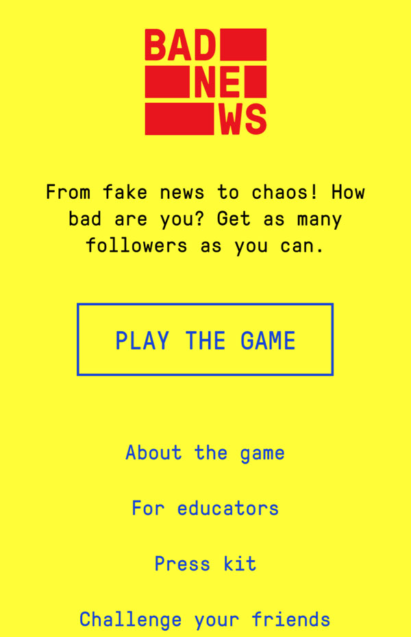 他们希望通过这个游戏,帮助人们更好地分辨互联网上的不实新闻。