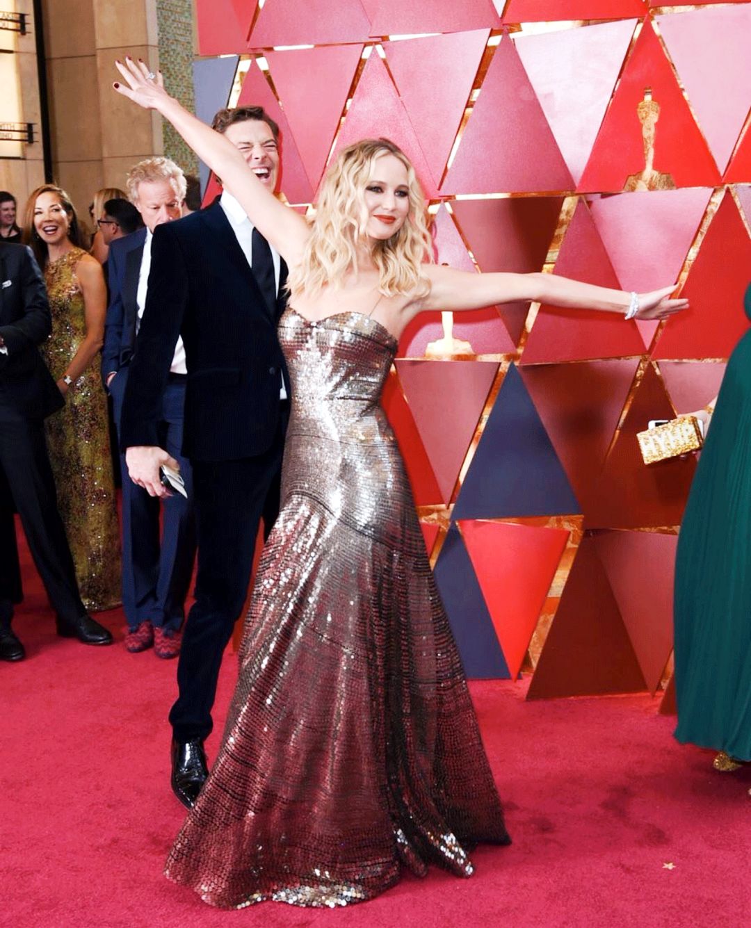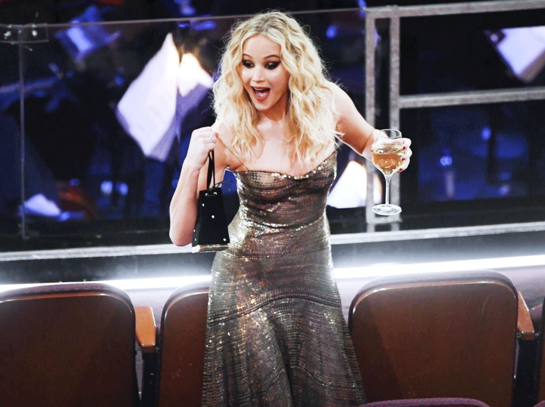 还有把奥斯卡当自家后院的女神经,Jennifer Lawrence(詹妮弗·劳伦斯)。前一秒静如处子,