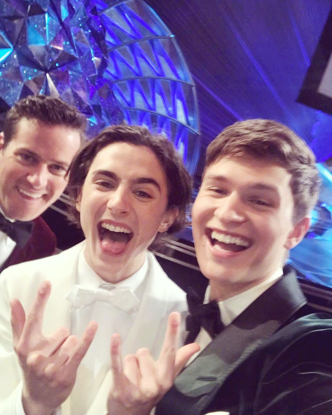 还跟Armie Hammer、Ansel Elgort一起拍了张名叫“对面的女孩看过来”的自拍。