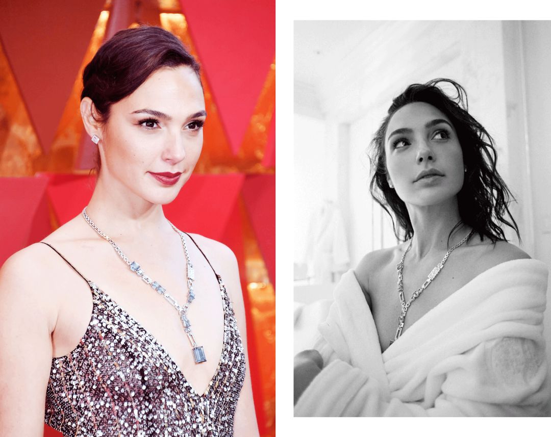 她的珠宝更厉害:项链、戒指、耳环加起来一共128克拉,价值2500多万人民币,来自Forevermark。