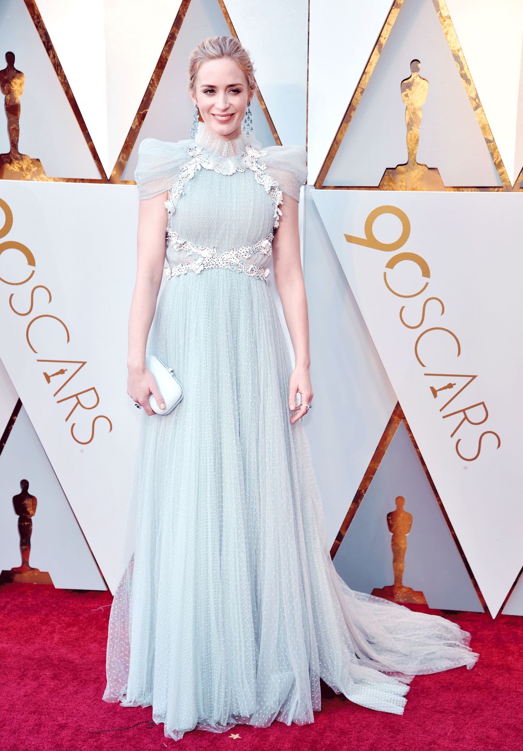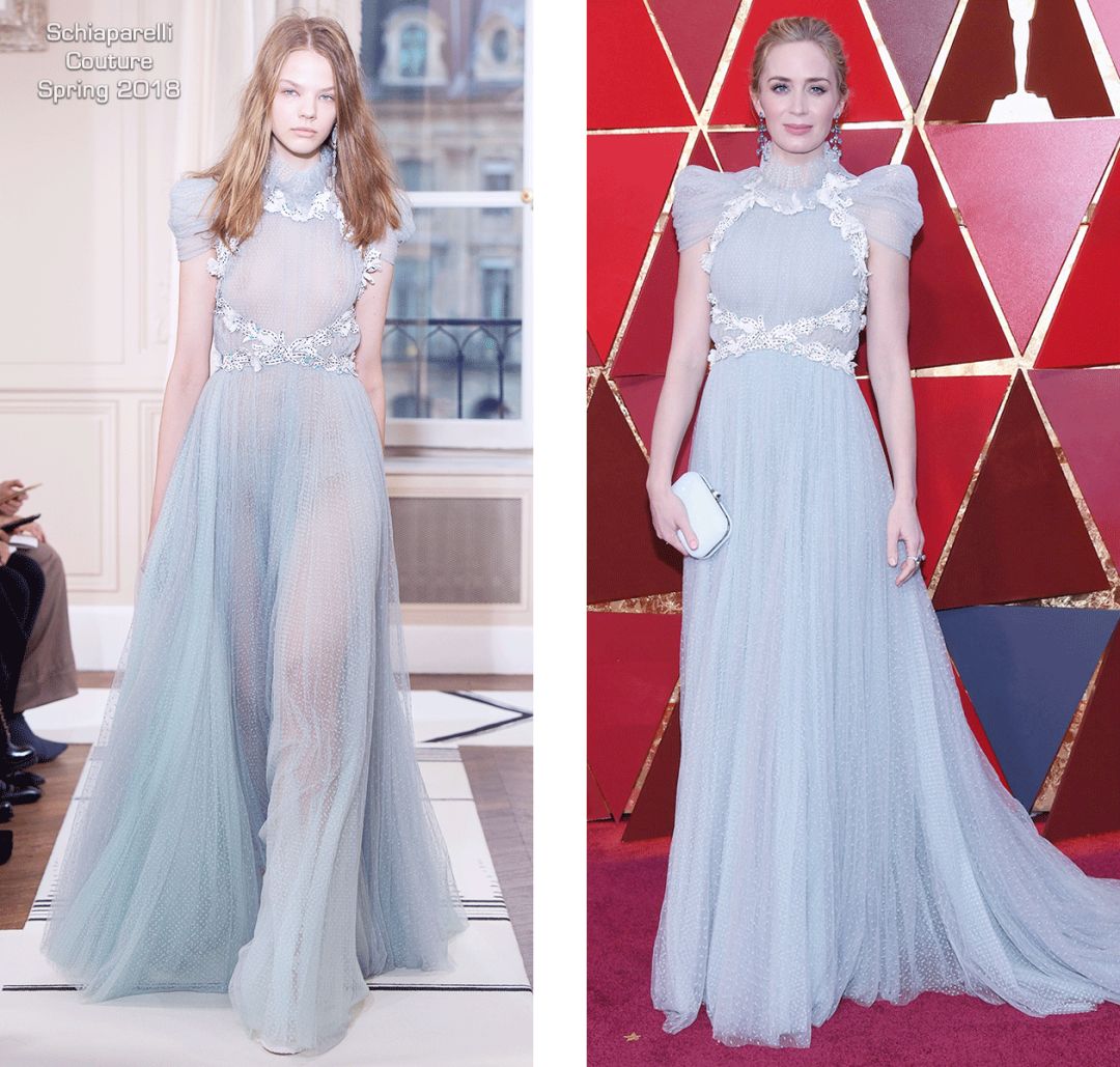 当年女魔头身边那个跋扈的Emily现在像个仙界即将出嫁的美娇娘,她穿着Schiaparelli的高定,带着蓝色的水晶耳环,一切都显得她的蓝眼睛清澈得我忍不住想钻进去游两个来回。