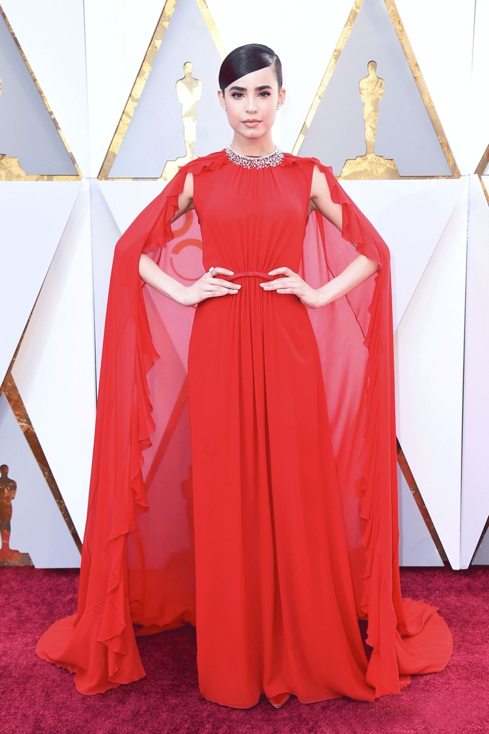 Sofia Carson这身就浓烈很多, 应该是嫁到古希腊古罗马去了。