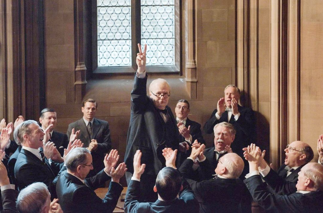 据说因为角色,Gary Oldman光化妆就需要4个小时,每天的工作时长差不多在18-20小时。光是在化妆椅上就花了超过200个小时,一共化了61次妆,很拼。