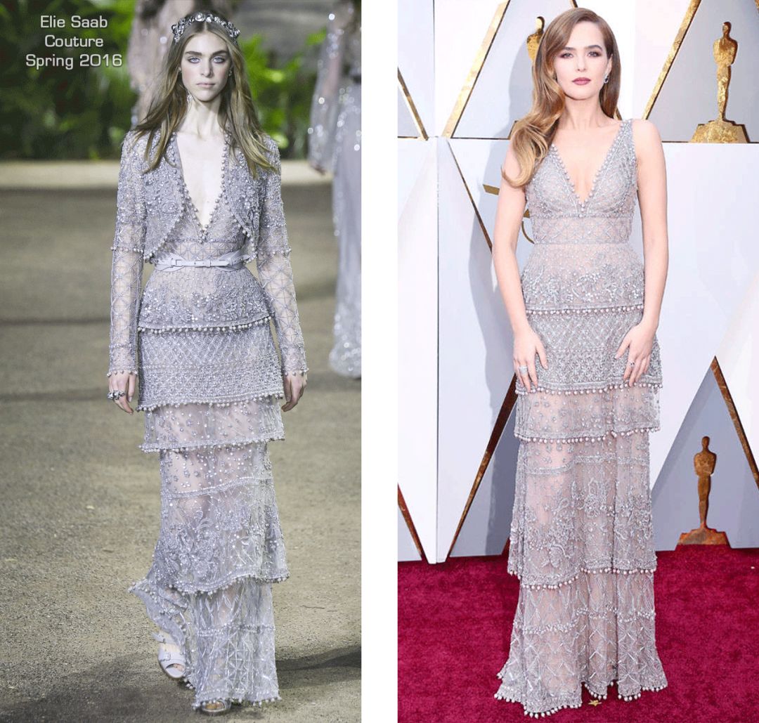 Zoey Deutch这身Elie Saab的高定裙像个高级的进口地中海地毯,配上她精致的妆容和发型,价格立马又翻了一番。