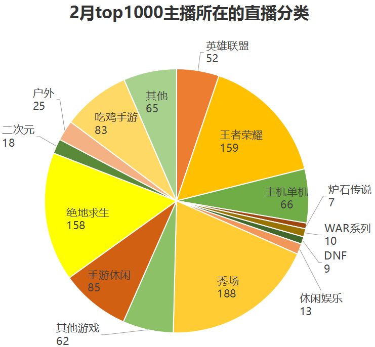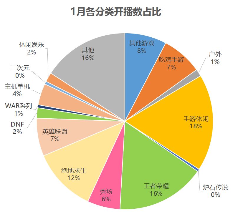 热门分类:王者荣耀、绝地求生、英雄联盟、主机游戏、炉石传说、DOTA2、二次元、星秀,根据直播观察网的数据选取。