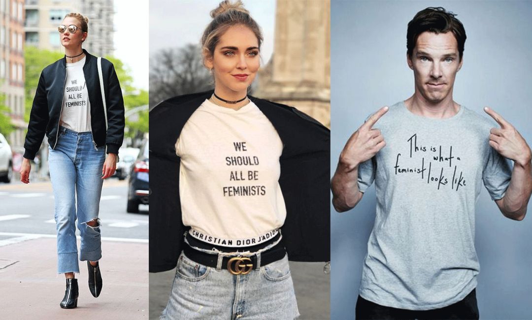 ▲ 当下趋势是明星红人们也纷纷穿上Feminist Slogan Tee应援女性运动。